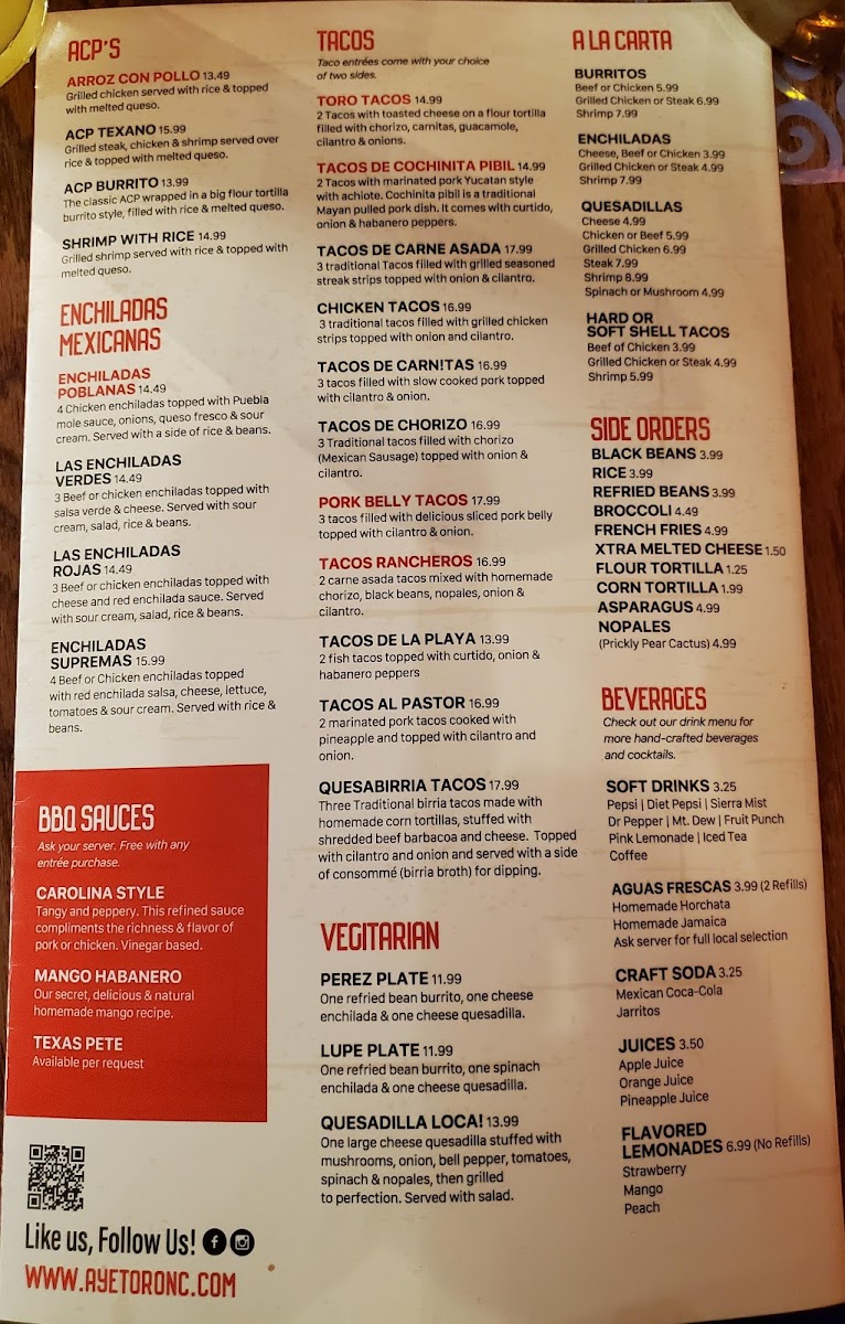Introducing the Menu at Aye! Toro Tacos & Tequila